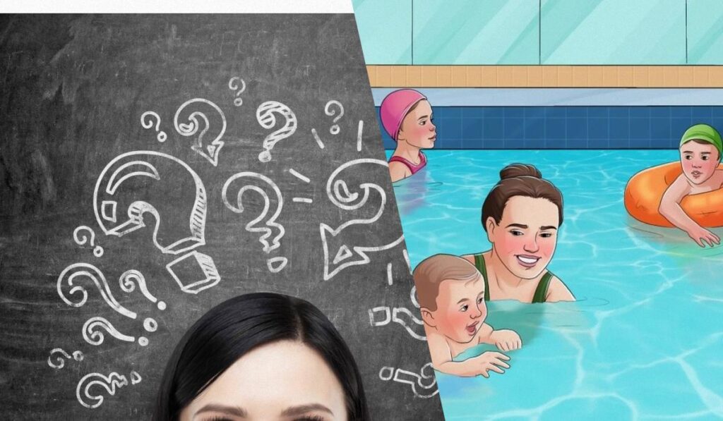 Dovresti essere in grado di tenere d’occhio tutte le piccole cose nella tua piscina. Un bambino sedeva su gambe gonfiabili mentre l’altro sedeva in piscina. La mamma aiuta il suo bambino a divertirsi nuotando. C’è qualcosa in questa foto che sembra inappropriato?
