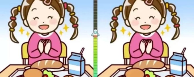 Queste due foto mostrano una ragazza seduta a un tavolo. A prima vista, le due immagini sono identiche, ma ci sono tre sottili differenze tra loro. Prova a trovarli.