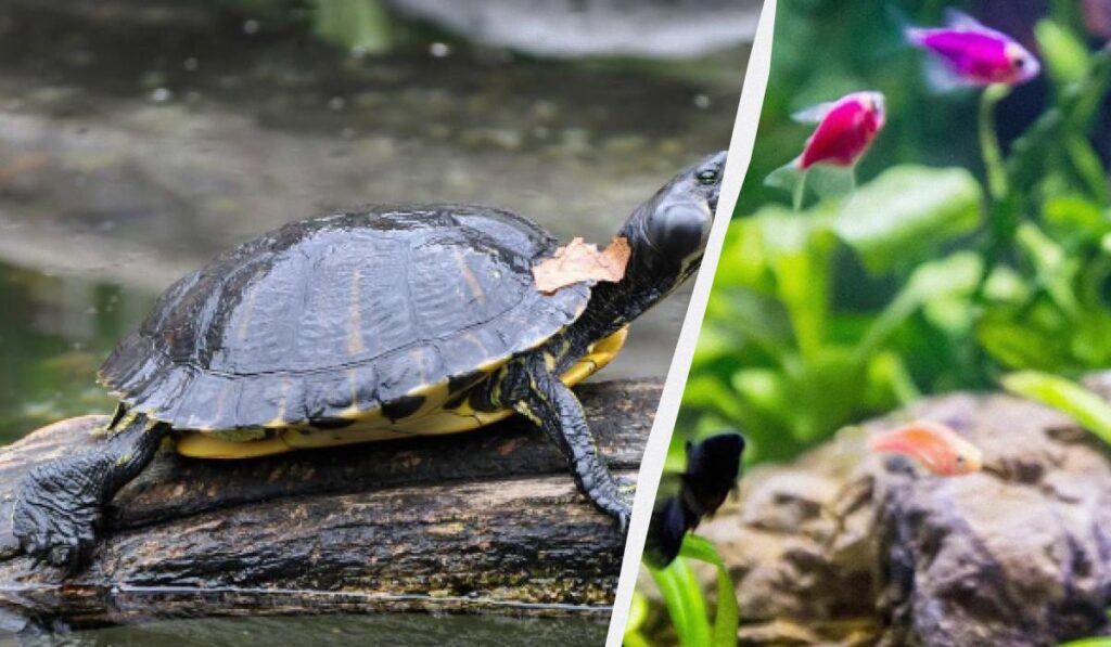 Tra le tante specie di pesci, dovresti vedere le tartarughe il prima possibile. Questo animale può fondersi con qualsiasi cosa nelle vicinanze. Inoltre, altri oggetti nell’immagine possono rappresentare un’enorme distrazione.
