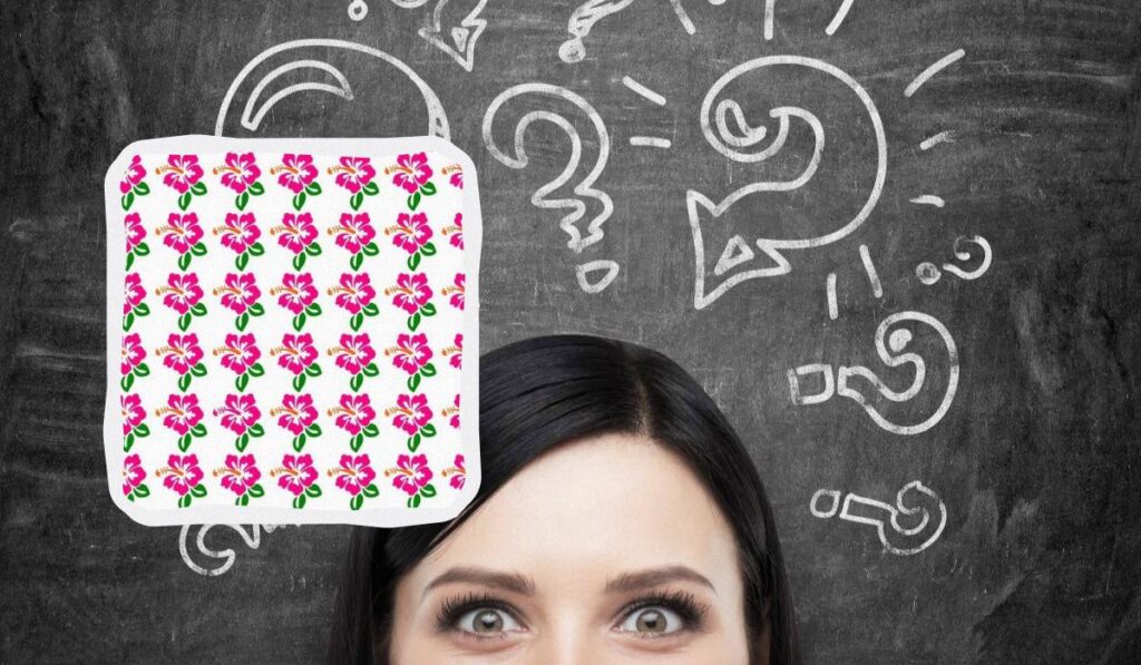 Quindi, davanti a te c’è un puzzle con sopra un fiore di ibisco. Devi stare attento a trovare qui un ibisco insolito: è diverso dagli altri fiori di ibisco. Hai solo 18 secondi per trovarlo. Pronti, pronti, cominciamo!